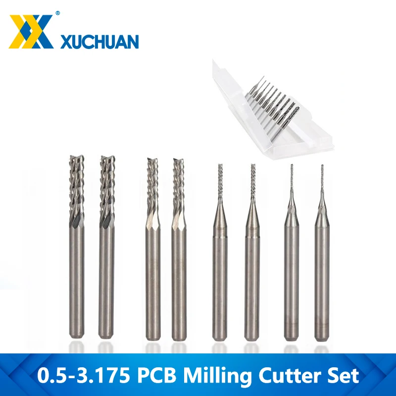 Name: 10 Uds 0,8-3.175mm PCB de carburo juego de cortadoras de fresado 3.175mm vástago de maíz Molino de extremo fresadora cortador Bits de corte CNC herramientas de fresado